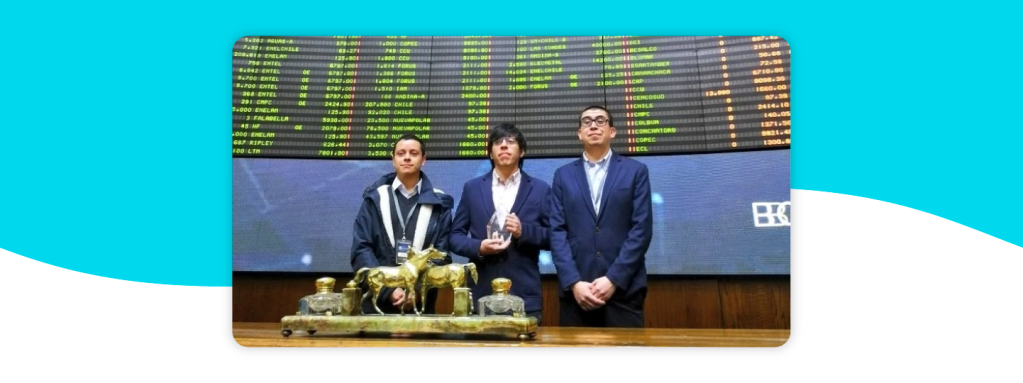 Y por otro lado, parte del equipo se encontraba en la mítica Rueda de la Bolsa, participando del evento de premiación del Programa Startech, impulsado por Bolsa de Santiago y que tuvo como propósito reconocer, brindar un acompañamiento y asesoría experta desde la perspectiva financiero/bursátil a un selecto grupo de Startups y Fintech con operación en Chile.