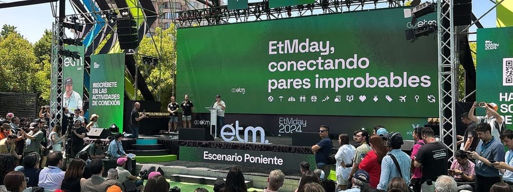 EtMday es el Encuentro Internacional de Innovación, Emprendimiento e Inversión más grande de Latinoamérica, que se lleva a cabo en el Parque Bicentenario de Vitacura. El evento más grande de emprendimiento en Latinoamérica, cuenta con espacios para startups, charlas, talleres y oportunidades de negocio.